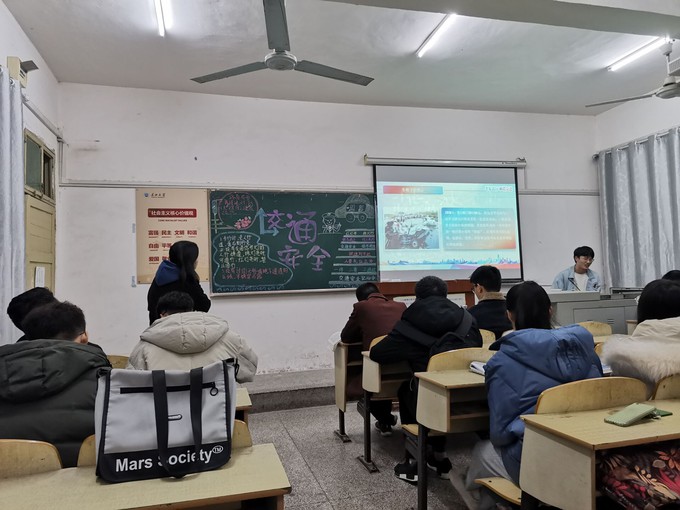 班会期间,各班均讲述了发生在身边的违反交通法规造成安全事故的真实事例,并播放相关视频,发人深省。其中,金融5182班通过视频详细介绍了遵守交通规则的重要性和必要性,其中一些平常不常见的交通信号更是让员工学习到了比较陌生的交通安全知识。金融5181班则传授给同学们一些有关交通安全的顺口溜,以便更加了解交通安全知识,谨记交通安全的重要性。其他班级通过讲解PPT等方式进行了交通安全学习,增强了员工安全意识,了解到生命的可贵,树立自护、自救观念,形成自护、自救的意识。