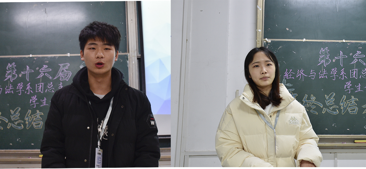 大会第二项,部门代表及主席团、志愿者队长发言。首先,组织部部长石烨对其部门工作进行了汇报总结,提出要借鉴以往的经验,更好的开展下一年度的团学工作。其次,青年志愿者队长程遥指出对于“态度热情,投入不足”问题需要端正良好态度,以积极饱满的热情开展工作。最后,由团总支员工会副书记侯玉婷做出以下要求:第一,工作要及时;第二,工作上多注意细节;第三,多沟通多交流。会议的第三项,由卢佳智老师宣读经法系团总支员工会表彰文件,党总支副书记杨杉杉老师为组织部、女生部、外联部、心委部四个优秀部门颁奖,卢佳智老师为陈旺等9名优秀员工干部颁奖。