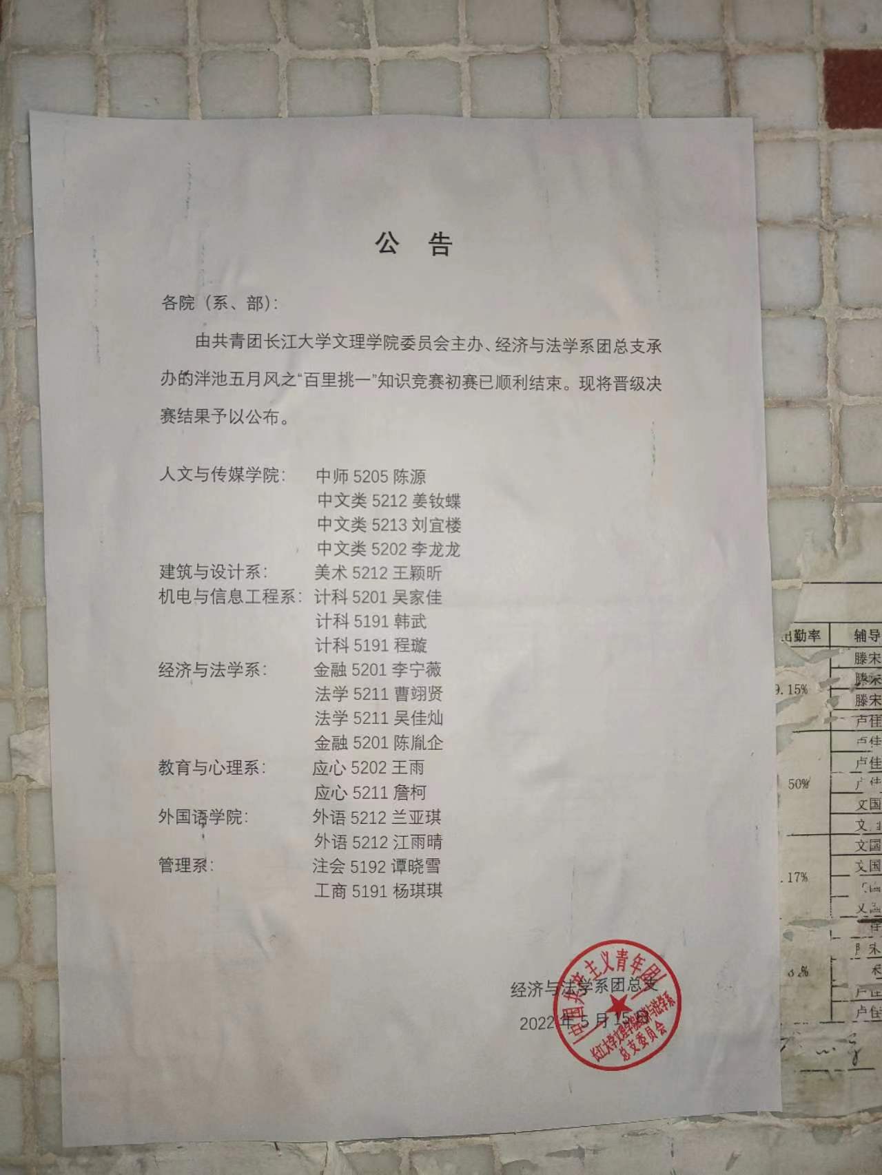 本网讯(见习记者 陈燕妮 李雅雯)5月14日晚七点,由共青团太阳集团122cc委员会主办、经济与法学系团总支承办的泮池五月风之“百里挑一”老员工知识竞赛活动初赛正式开始。西校区比赛地点在四教300教室,城中校区比赛地点在二教105教室。