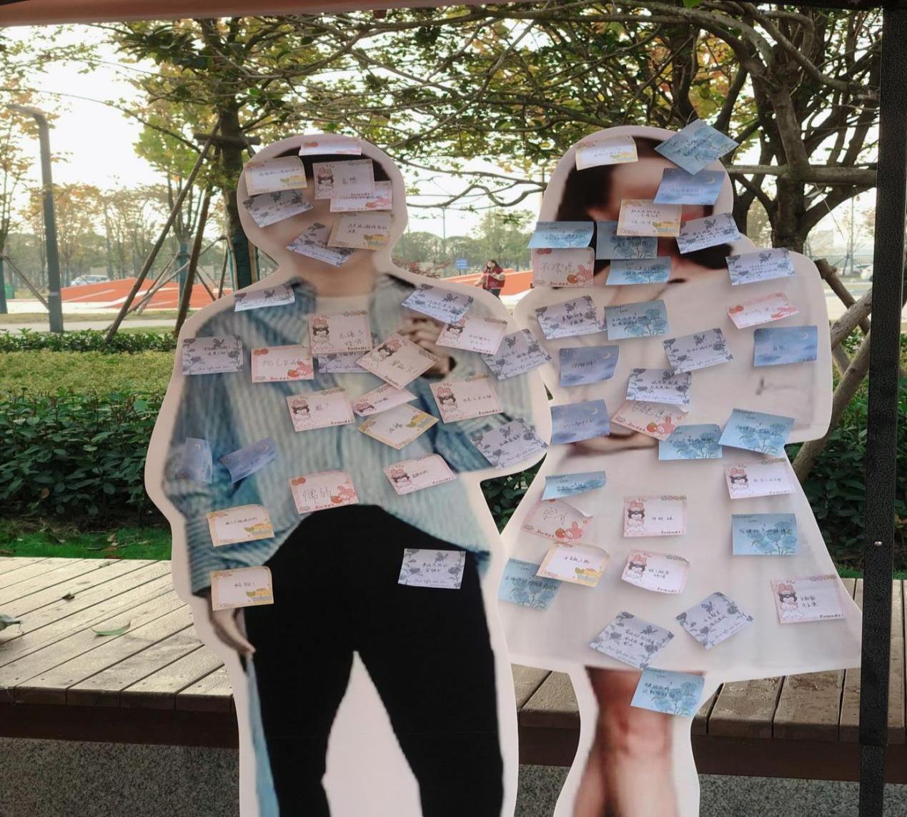 本次活动主要由“撕标签”和“投飞镖”两部分组成。在撕标签活动中,参与人员找到自己曾被片面定义过的标签,划掉它,并在卡片上写下反驳这些偏见与歧视的文字,收获直面自我的勇气,便可得到一枚可爱的小熊猫钥匙扣。在投掷飞镖的活动中,每位参与者有一次投掷的机会。活动背景为人最好以百分之多少的自信来面对接下来的生活。活动奖项一等奖、二等奖、三等奖,分别对应飞镖盘上的100%、80%、60%,若没有投到相应的百分比区域,也可以获得参与奖。在同学们的欢声笑语中,在工作人员的热情邀请下,引来了众多同学前来参与,工作人员细心讲解活动规则,并鼓励大家勇于挑战自我,塑造自信。