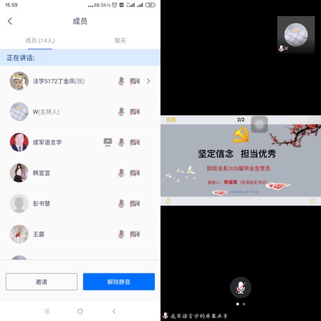 本网讯(通讯员 丁金凤)5月13日下午,经法系员工党支部通过视频会议方式召开毕业生党员离校专题教育。经法系党总支书记李成军、员工党支部组织委员文国霞,全体员工党员参加会议,会议由经法系党总支副书记王震主持。