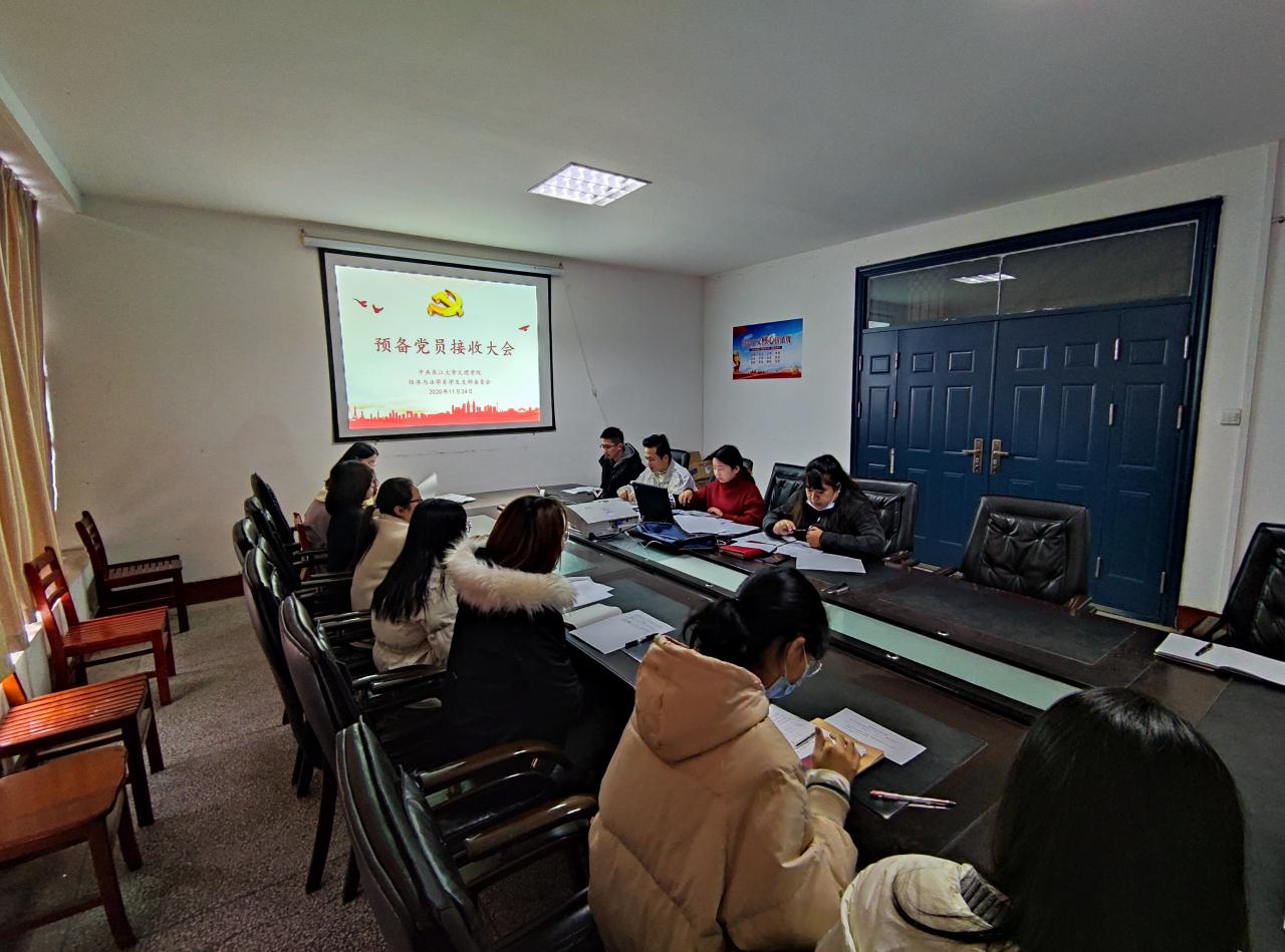 支部书记宣布大会决议后,五名新接收的预备党员同志依次表态,表明自己对大家提出意见的看法和今后的决心,他们纷纷表示,感谢组织和各位老师的培养,感谢各位党员同志的帮助,今后将认真反思自身存在的问题并努力改正,向优秀党员学习,始终做到不忘初心,牢记使命,砥砺奋进。会议最后,杨杉杉对以上同志表示衷心的祝贺,她告诫大家要时刻关心国家大事,坚定政治立场,提高自身思想觉悟。同时他结合自身体会对大家提出要求,一是从程序上入党,牢记今日,同时应有自己的抱负与理想;二是从组织上入党,为党组织的建设而奋斗;三是从思想上入党,要有模范意识,落实到行动中去。