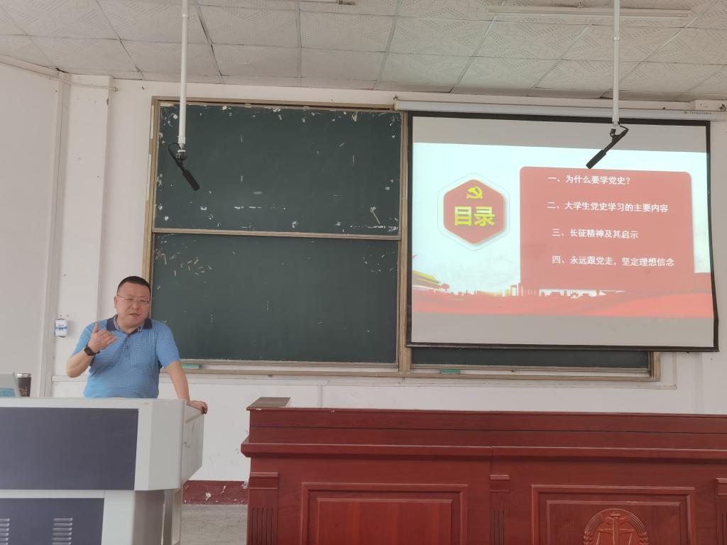 党课讲座上,李书记首先提出“为什么要学党史?”的问题,带领同学们回顾了中国共产党团结带领中国人民不懈奋斗的百年光辉历程,感悟百年党史中蕴含的强大真理伟力,让同学们更加了解学习党史的意义。接着,李书记从“老员工学党史的主要内容有哪些?”、“长征精神带来了什么启示?”两个方面进行深入讲解,生动形象地描述了长征精神、革命精神,人民群众之所以选择中国共产党,这离不开一代又一代中国共产党人的理想信念。
