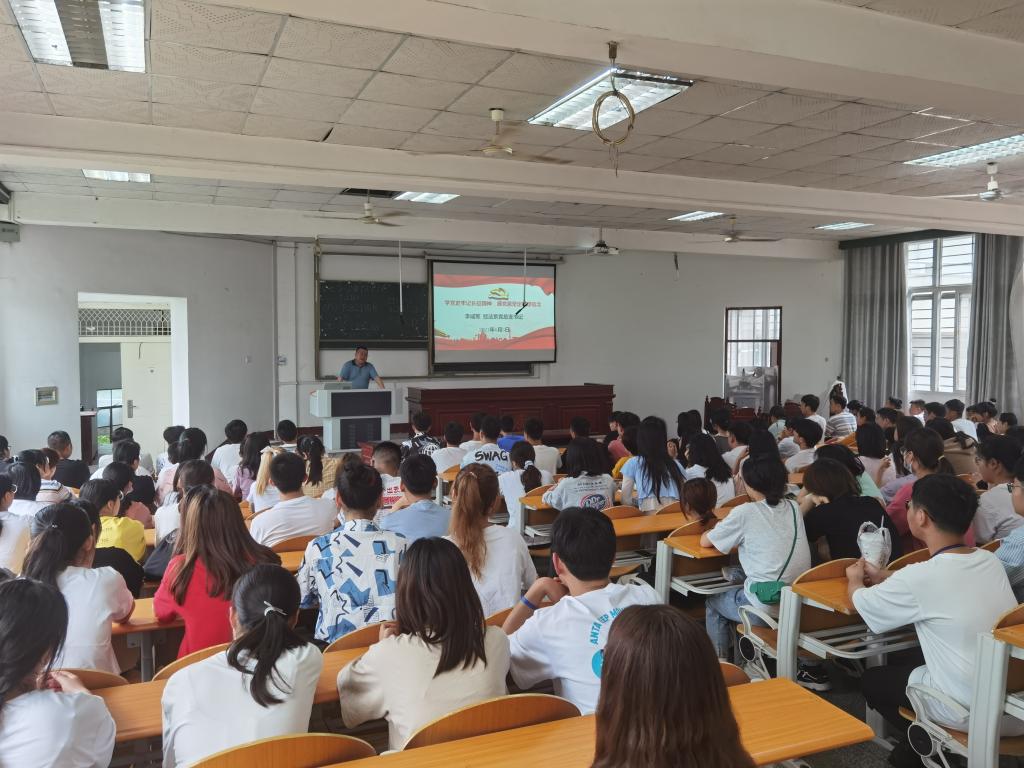 本网讯(通讯员 周星天)为贯彻习近平总书记在党史学习教育动员大会上的重要讲话精神,6月3日下午经法系在四教300组织召开了“学党史牢记长征精神;感党恩坚定理想信念”的专题讲座。本次讲座特邀经法系党总支部书记李成军老师主讲,全体员工党员、入党积极分子、大一全体员工参加。