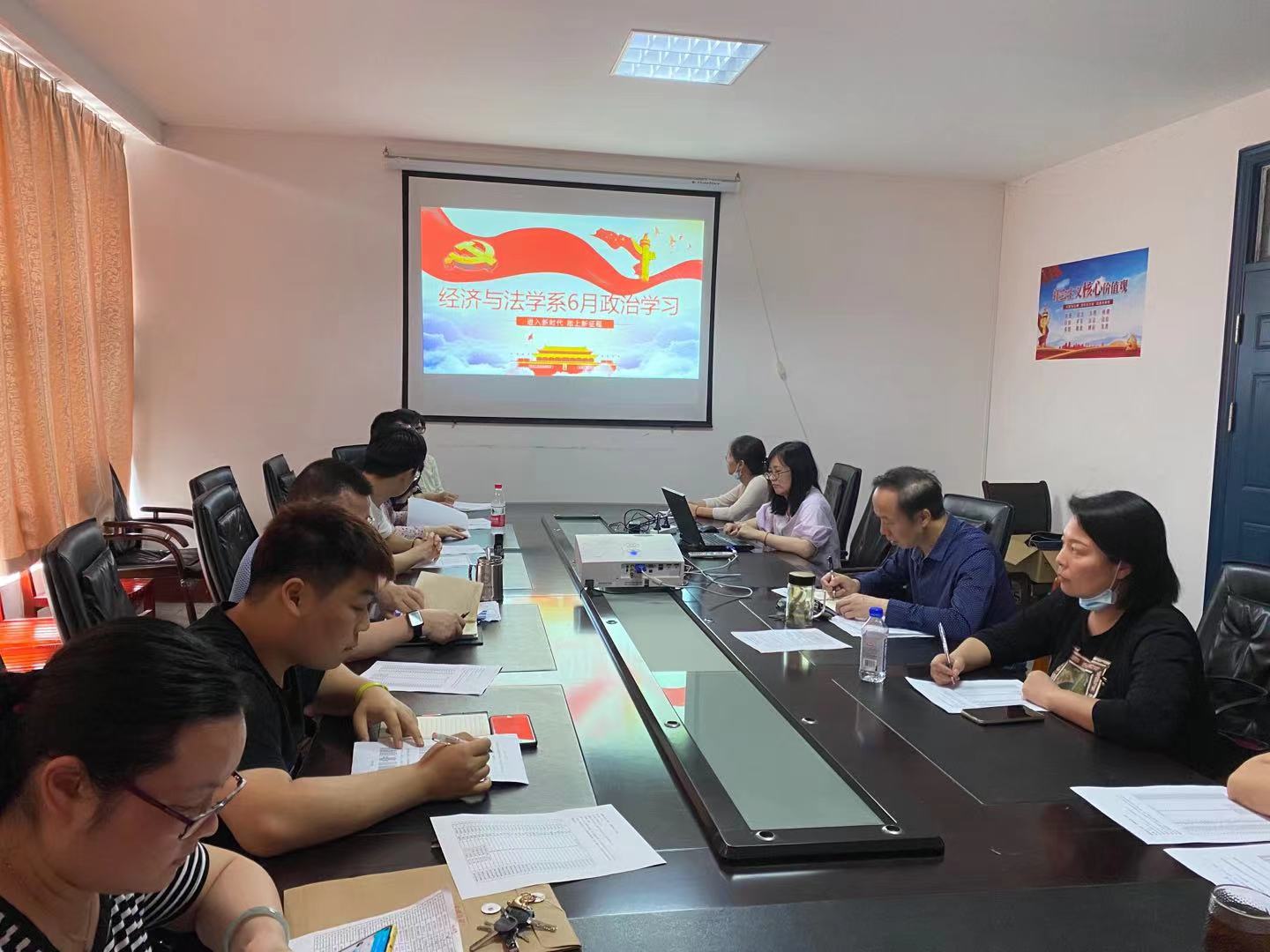 6月10日下午14:30,经法系全体教职工在系会议室开展6月政治学习。会议由党总支书记李成军主持。