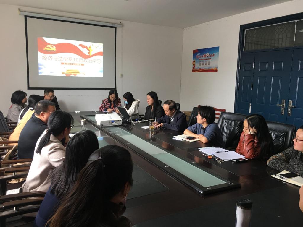 10月15日下午13:00,经法系全体教职工在系会议室开展10月政治学习和支部主题党日活动。会议由党总支书记李成军主持。