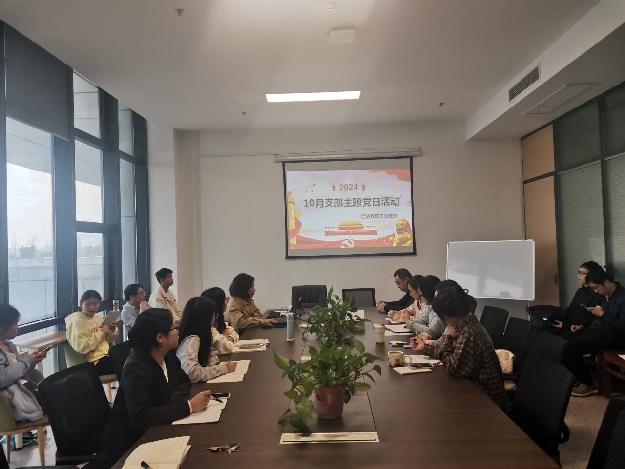 10月17日下午15:00,经法系教工支部在系会议室开展10月政治学习和支部主题党日活动。会议由教工党支部书记陈莉主持。
