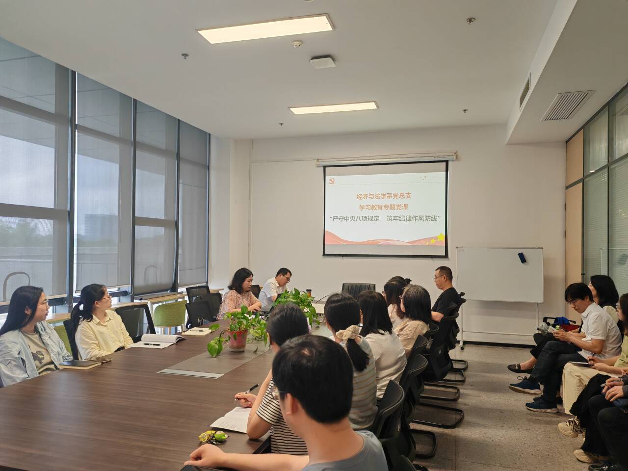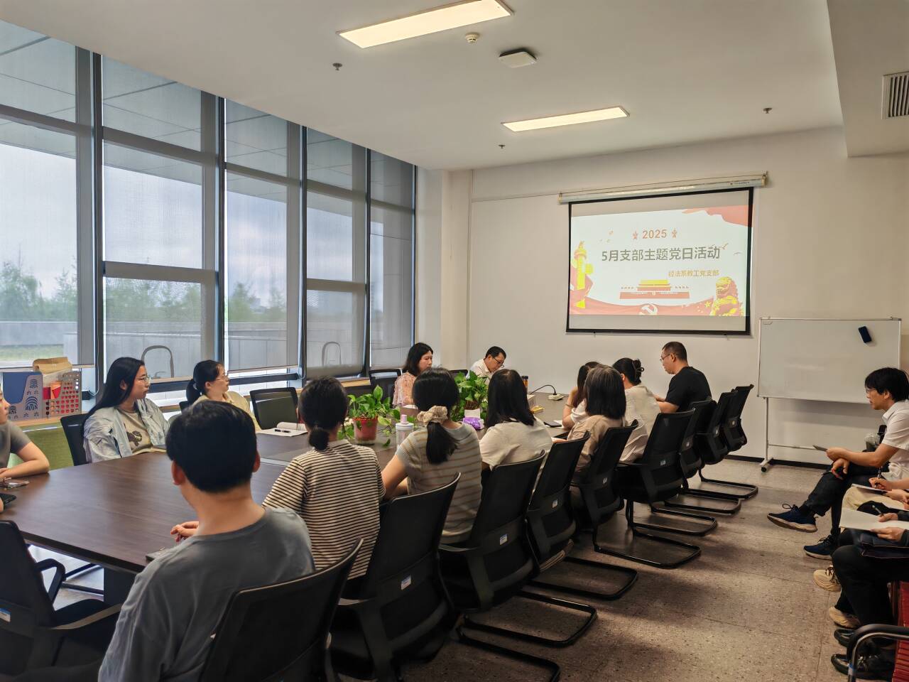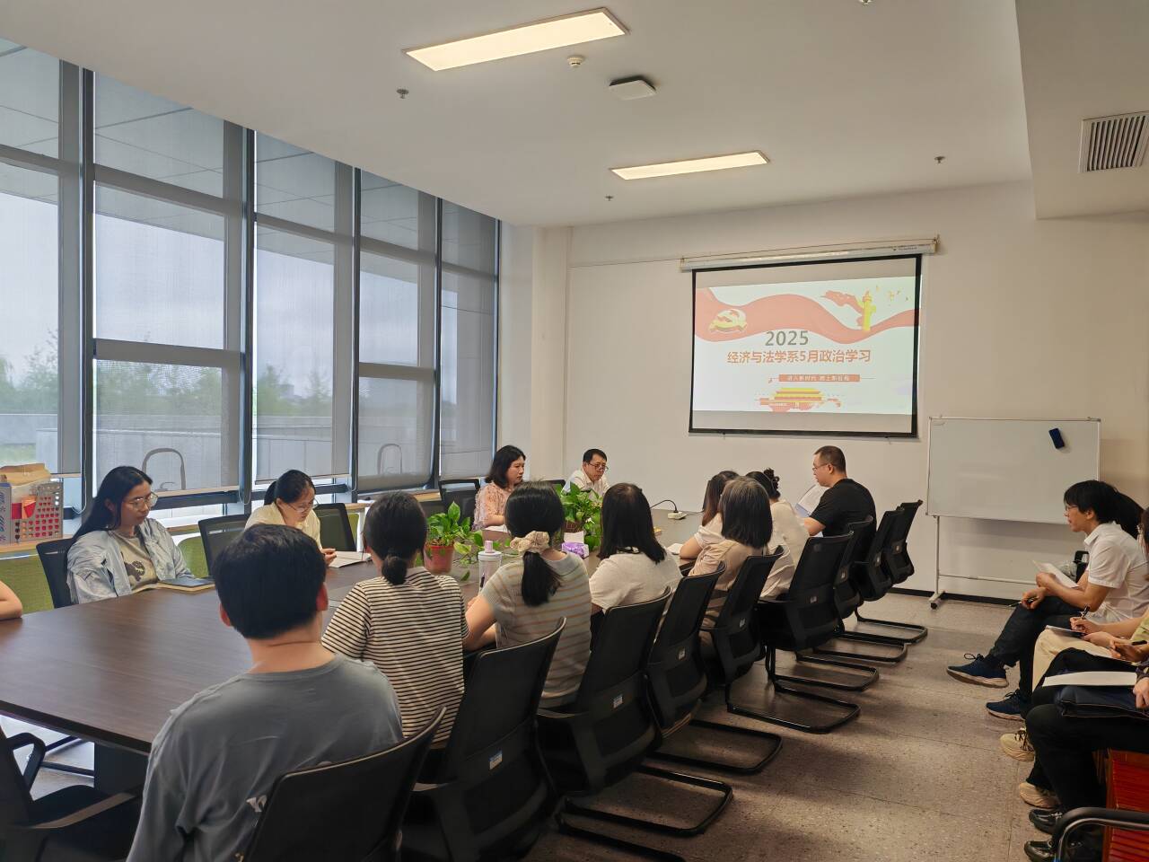 5月22日中午12:50,经法系教工支部在系会议室开展5月政治学习和支部主题党日活动。会议由教工党支部书记陈莉主持。