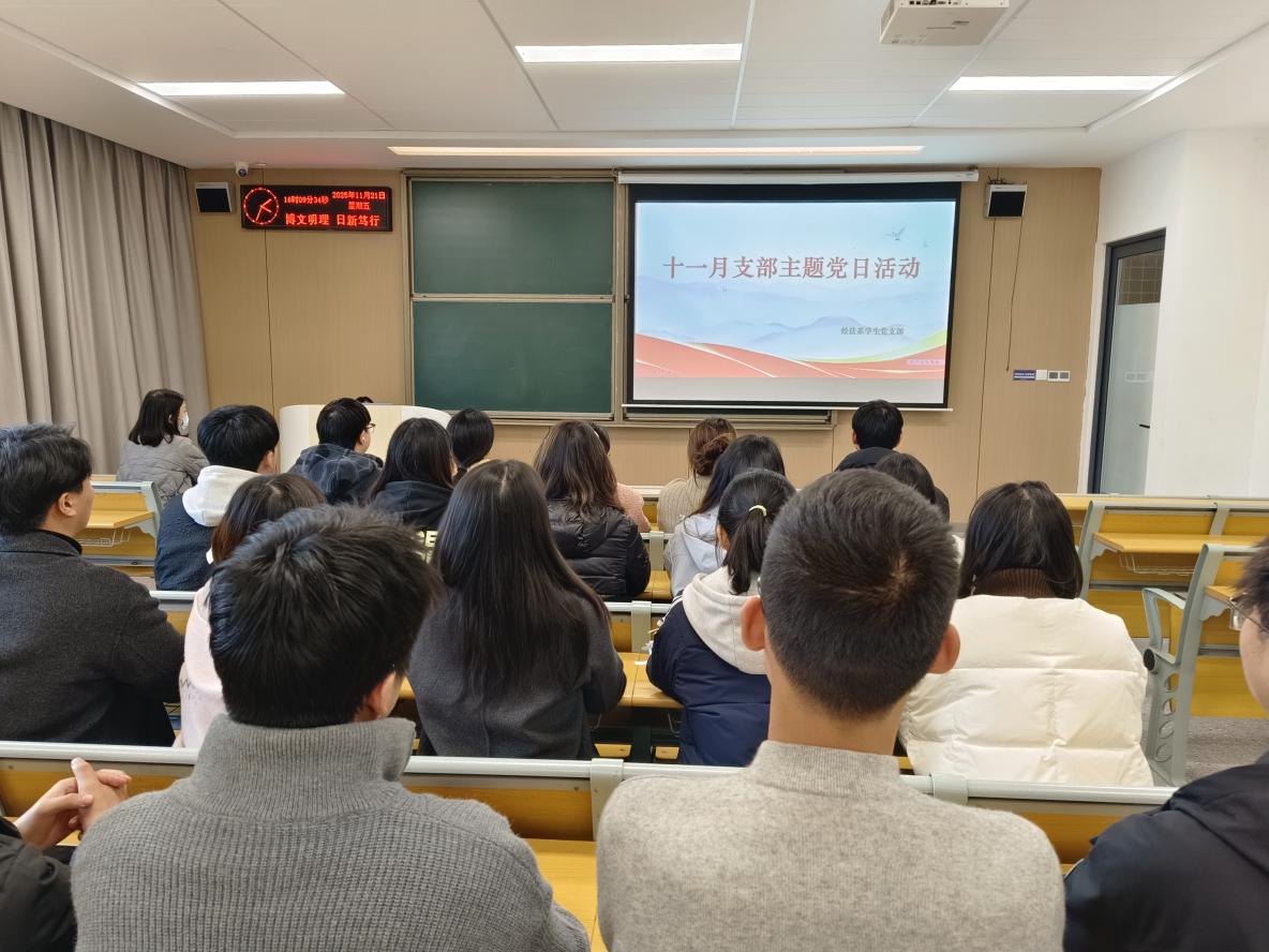 本网讯(员工记者 王小庆)2025年11月21日下午16:00,经法系员工党支部党员在教学楼C-118m开展11月政治学习和支部主题党日活动。