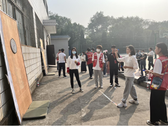 此次游园活动设有传统项目,例如:踢毽入篮、定点投篮、镖镖红中、套圈,也有新增的飞盘项目,赛场上,每位教职工热情洋溢,笑容满面,精力充沛,力争名次,营造着团结和谐、拼搏向上的良好氛围。