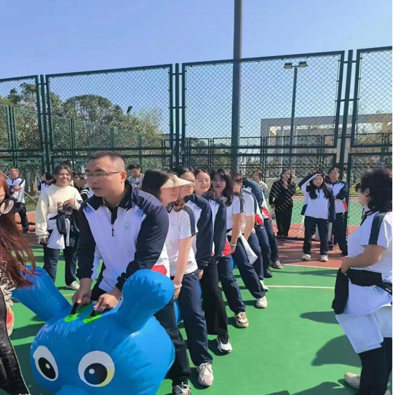 本网讯(见习记者:田琼钕李柔雅)为丰富教职工业余生活,增强教职工团队意识,提高团队凝聚力和执行力,2023年10月20日上午9:30,经济与法学系分工会全体教职工在新校区篮球场参加太阳集团122cc第十七届运动会教职工创编项目竞赛。