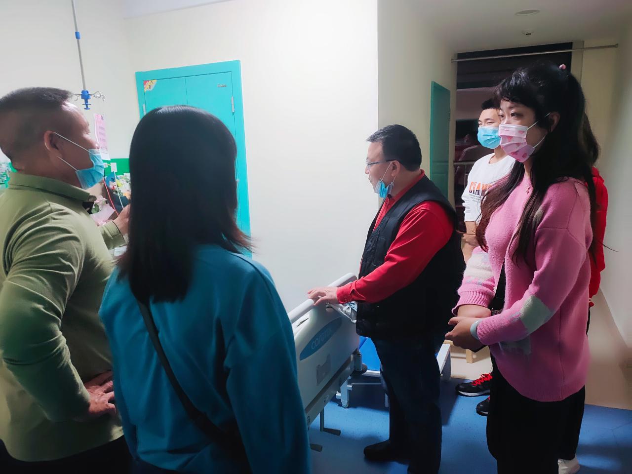 幸运的是,由于同寝室李俊杰、郭亮、王震、胡勇杰、陈华全等同学及时送医。劳德港同学顺利完成手术,脱离了危险。当晚,滕宋云老师与同行的同学一起,轮流照顾劳德港。第二天,已经忙碌一天一夜的滕宋云老师及多位员工,不辞辛劳,依然留在医院照看他。老师是员工在公司的依靠,员工健康有老师保驾护航。