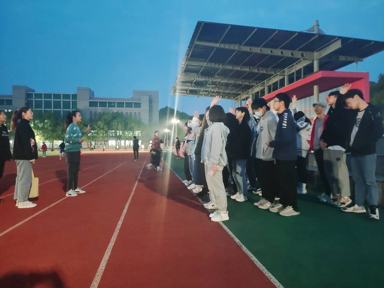 比赛临近,在训练过程中能够看出同学们对待啦啦操的认真态度,也表现出了同学们的团队意识,进一步提高了同学们的集体荣誉感。