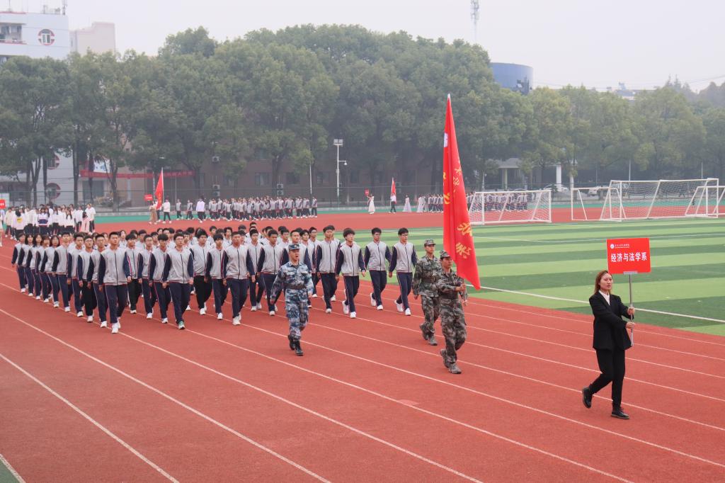 千名同学组成的华尔兹舞队,以青春活泼的舞步拉开了运动会的序幕。伴随着激昂的《运动员进行曲》,15个院、系部代表队高喊着嘹亮的口号,依次入场。大家的面容神采奕奕、步伐整齐划一,以饱满的精神面貌展现了文理师生的气质和风采。