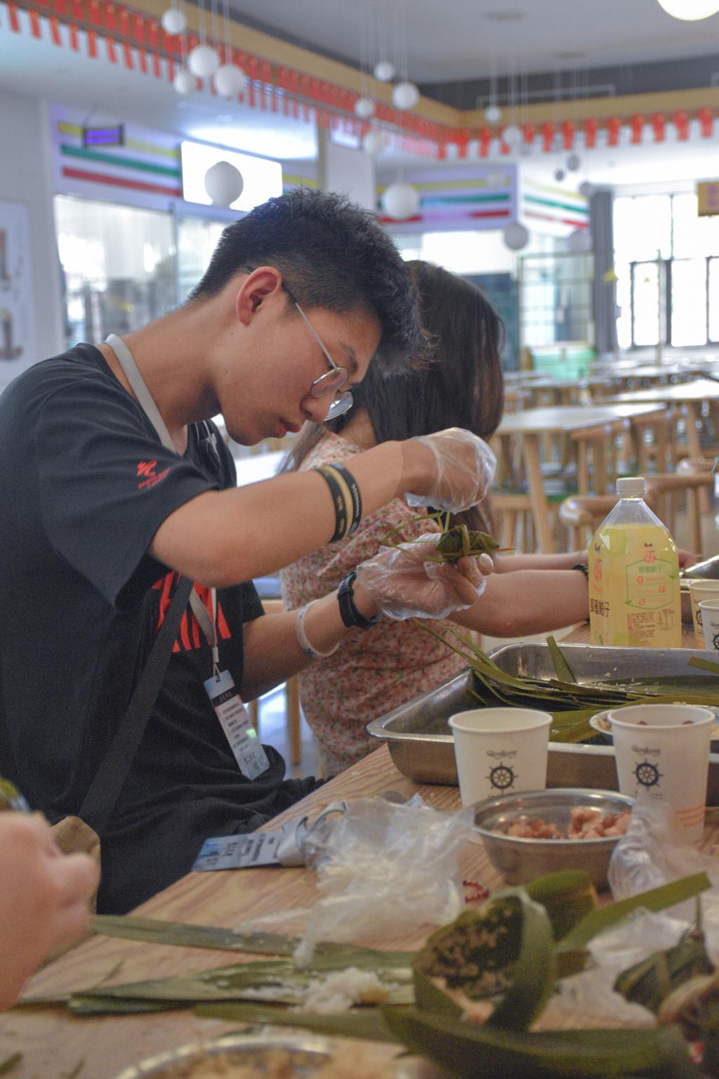 活动开始,各部门通过比赛的形式分组包粽子,比赛共分为两轮,并由卢佳智老师和相关负责人评出优胜小组。同学们积极参与,在认真学习包粽子的方法过程中,进一步了解了端午节文化的魅力。接着,每组分别派出一位同学参与粽子大胃王比赛。同学们也品尝到了自己动手制作的劳动成果,粽子不仅是舌尖上的美食,更是中华民族难以割舍的温馨。祖祖辈辈怀念祭奠,粽香总是如期飘荡,吃不透的粽子,道不完的情思。