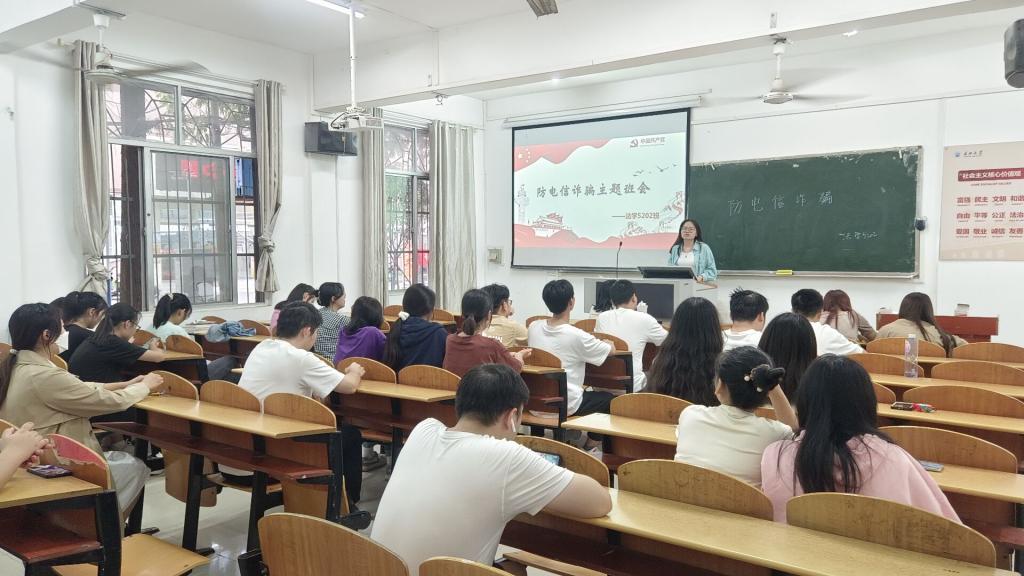本网讯(见习记者 田雨洁)9月28日晚,经法系各班开展“防范电信诈骗”主题班会,由各班学委主持会议。