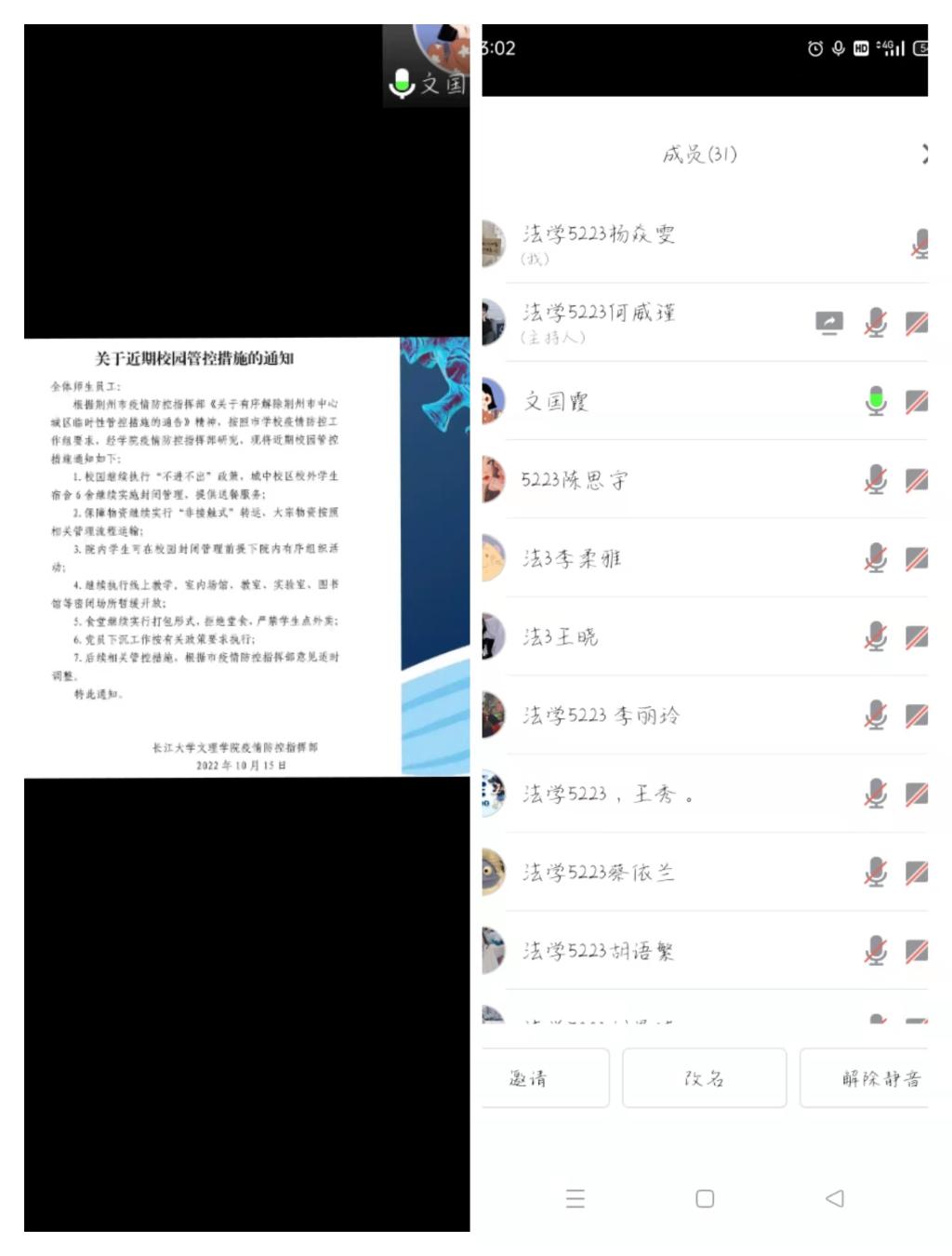 此次班会的开展,不仅强化了经法系全体员工的集体意识,提高了安全防范意识,更凝聚了全体经法学子同心战疫,共克时艰的信心和决心!大家齐心协力,为创造平安而美好的校园生活共同努力!