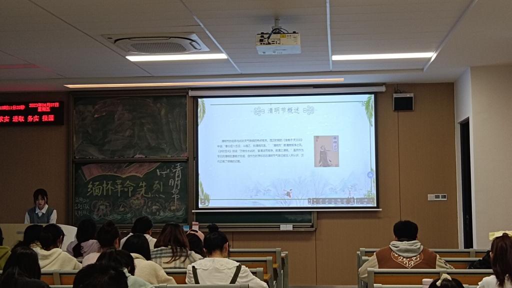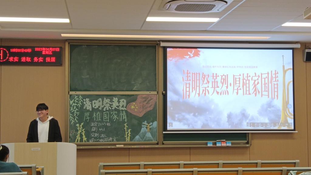 法学5223班主持人主要讲解了传统节日清明节和祭奠先烈等主要内容,以观看视频、小组交流讨论等方式了解革命先烈的事迹,学习了他们的革命精神,提高了同学们的爱国精神;国贸5211班主持人首先带领同学们了解了清明节的意义和由来,接着以提问的方式讲述革命先烈的事迹,积极鼓励同学们踊跃参与,发表自己的见解,让同学们学习烈士们顽强拼搏、自强不息的革命精神。其他班级也分别以不同方式讲解了缅怀革命先烈的意义,让同学们知道了为什么无数革命先烈为了党的奋斗目标和理想信念,抛头颅、洒热血,不怕困难、不怕牺牲、前仆后继。清明祭英烈,给广大青少年带来的不仅仅是内心和灵魂上的教育和洗礼,也引导了广大青少年向英烈学习,帮助他们树立正确的价值观和远大的理想信念,在他们的心中播洒下爱国爱党的种子。