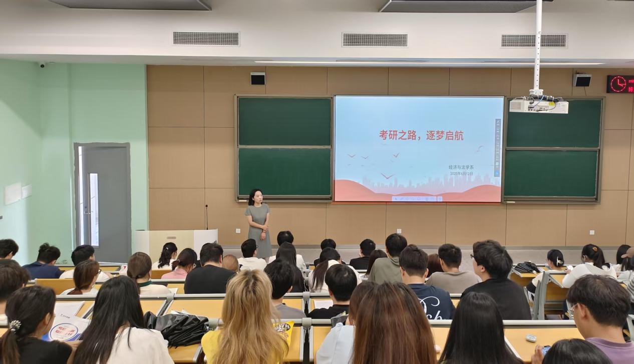 最后,常务副主任罗明强调,考研是知识积累与意志格局的双重考验,经法系学子需以扎实专业功底锚定目标、以长远学术眼光规划路径,并结合学科发展趋势提出三点要求:一是锚定学术坐标,在细分领域结合个人兴趣与学科前沿,关注领域动态并提前与导师沟通研究意向;二是构建科学方法论,参考目标院校近五年真题形成闭环复习策略;三是锻造抗压韧性,通过拆解目标调整心态,在自我迭代中保持前进节奏。她鼓励同学们以考研为契机,追求学术理想,勇攀知识高峰。罗明指出,考研不仅是一场知识的较量,更是一场意志的比拼,希望同学们树立坚定的信念,以科学的方法、顽强的毅力投入到备考中,向着更高的学术目标奋勇前进。