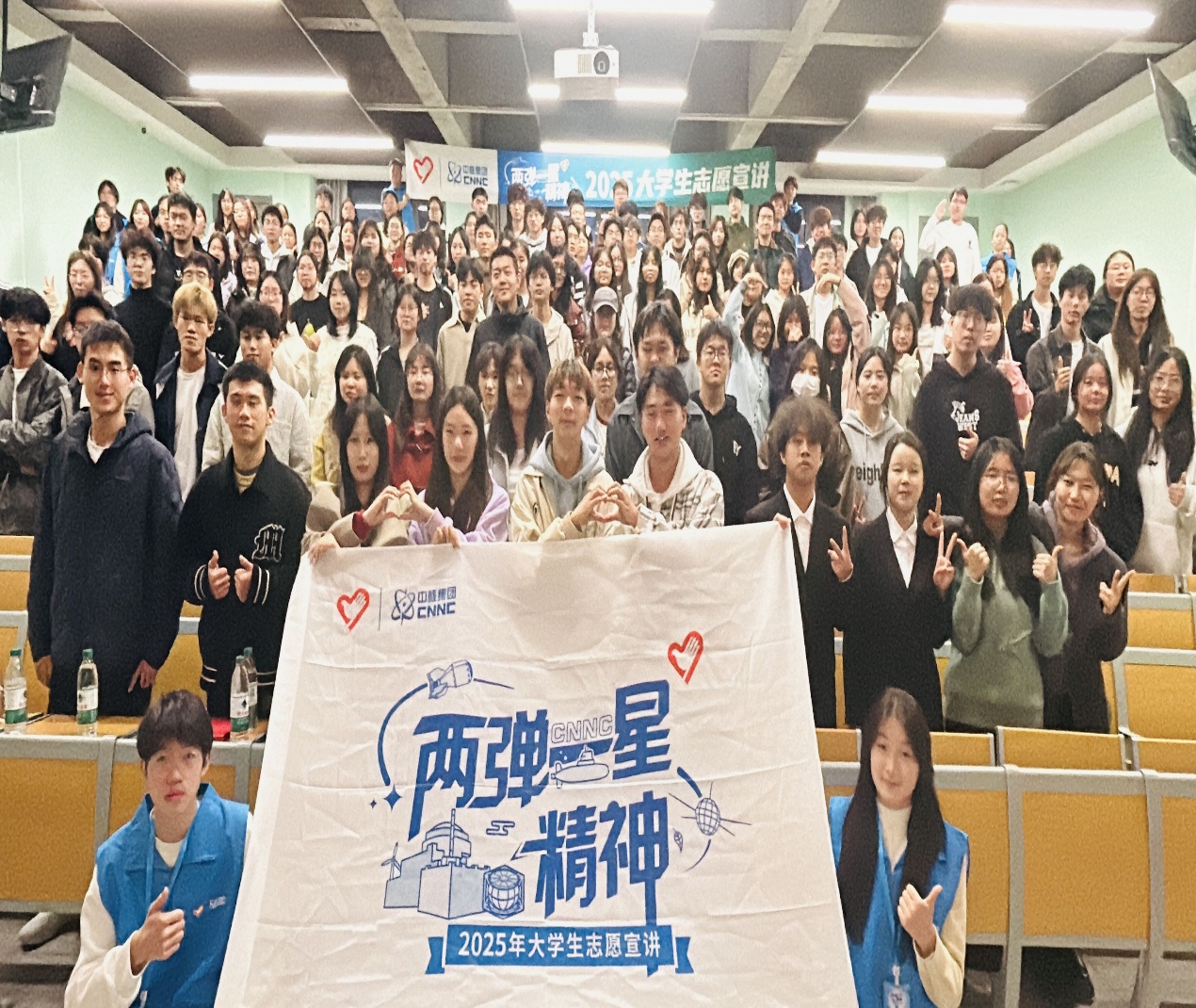 在本次团课的最后,经法系师生共同学习了“热爱祖国 无私奉献 自立更生 艰苦奋斗 大力协同 勇于攀登”的两弹一星精神,让其不断激励我们不畏艰难,自力更生,在新时代勇担使命,放飞远大理想。