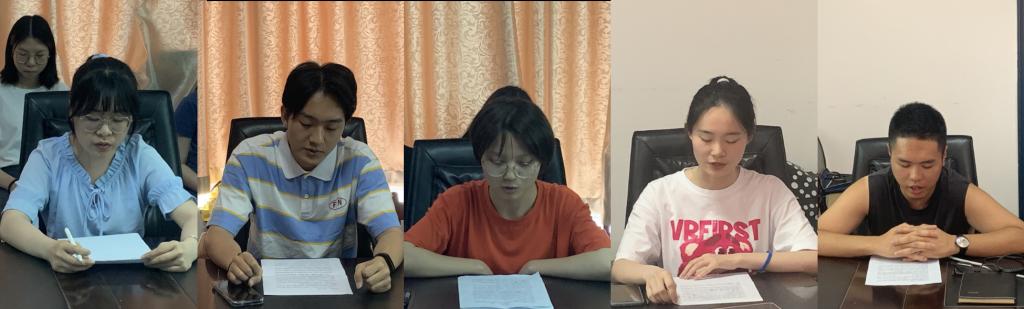 预备党员发言(从左至右:王嫚、江晟瑀、涂思雯、黄佳林、宗励)