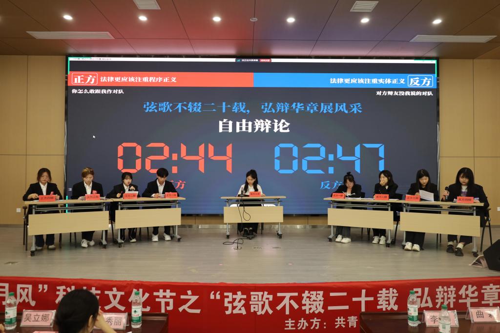此次辩论赛,参赛选手们持言语为剑,握逻辑为盾,为我们带来了一场智慧的盛宴。既有对“员工就业压力对于成才是催化剂还是抑制剂”的青年就业压力的辩论,又有对于“法律更应该注重程序正义还是实体正义”的社会实际问题的辩论。更有对“面对内卷,我们更需要合作共赢还是孤军奋战”的员工成长道路选择的辩论。