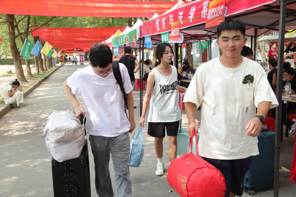 9月5日上午12点,经法系迎新志愿者们在接待点准备就绪。随着新生的到来,志愿者分工明确,带领经法系的新同学办理各项入学报到手续,耐心解答新生及家长疑问,帮助新生搬行李、布置宿舍等。百余名师生志愿者做到了“一对一”“点对点”帮助新生办理报到手续,各服务站点的设立实现了校外校内无缝衔接、从入校到入住全程引导服务。
