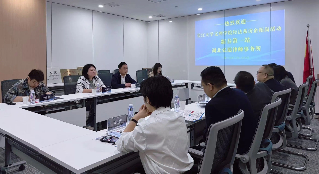 为推动产教融合走深走实,加强校企合作,引进新企业,拓展新岗位,促进毕业生高质量就业。2025年3月27日至28日,经济与法学系党总支书记辛裕率队赴湖北弘愿律师事务所、湖北国松律师事务所及湖北悦联商业管理有限公司开展调研走访,就人才培养、实习实践基地建设、党建共建等议题与行业单位深入交流,共谋协同发展新路径。