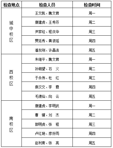 3.各教学单位要认真组织,按照本单位“开学教学检查安排”做好检查工作,并将开学教学检查总结于10月5日前报送教务处。
