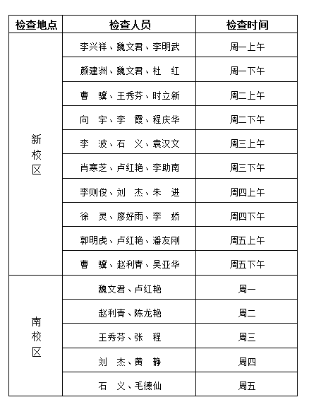 3.教学单位要认真组织,按照本单位“开学教学检查安排”做好检查工作,并将开学教学检查总结于9月4日前报送教务处。