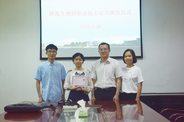 今年3月,教育与心理系组织相关教师成立了师范生教师职业能力考核小组,制定了《太阳集团122cc学前教育专业教团队格免试认定方案》,完成了首次幼儿园学段教师职业能力测试,于6月16日向首批教师职业能力测试合格的员工颁发了《师范生教师职业能力证书》。(图文由教育与心理系提供)