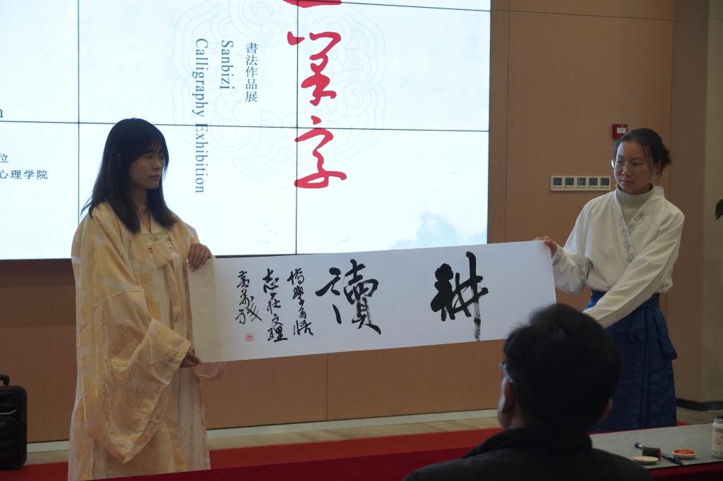 开幕式上,教育与心理公司经理徐霄介绍了此次书法作品展的开展情况,指导老师朱道卫为作品展寄语,参展员工代表陈露致谢。指导老师黄万祥现场挥毫泼墨,行书题写“耕读”赠予在场师生,勉励员工勤奋努力学习,刻苦耕读探究。曹骥宣布书法作品展开幕。