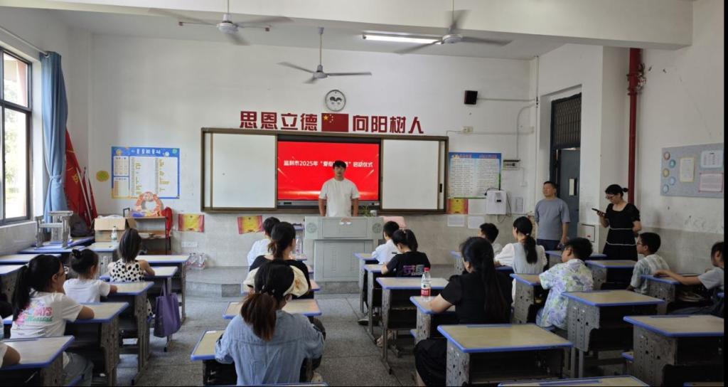 镇团委的黄老师紧随其后,发表了情真意切的讲话。他语重心长地勉励志愿者们,身为新时代青年,要将“奉献、友爱、互助、进步” 的志愿者精神内化于心、外化于行,用无私的爱心、超凡的耐心以及强烈的责任心,全方位呵护每一位留守儿童的成长,让他们在这个特殊的暑期感受到社会大家庭的温暖与关怀,健康快乐地度过每一天。