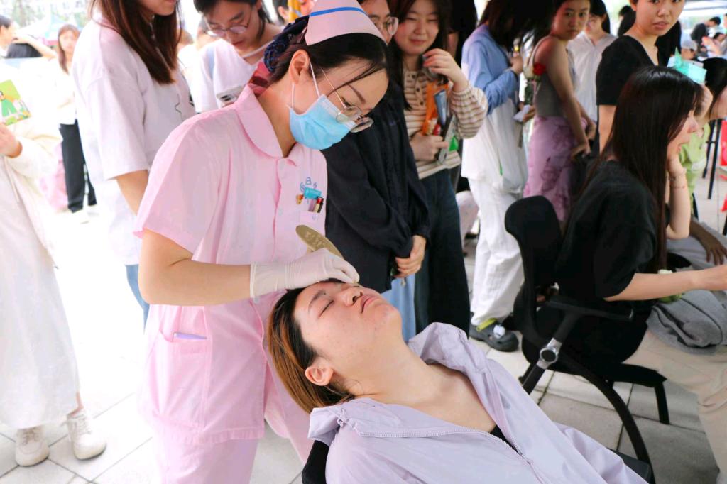 下午14点30分,讲座在B-112学术报告厅正式开始。讲座中,主讲人通过视频展示中医发展历程,并详细地讲解中医理论及养生知识,分享适合老员工的中医养生知识,帮助员工理解中医的健康调理理念。与此同时,校园大道上的义诊活动同步开展,中医师通过望、闻、问、切等传统方法为同学们提供健康咨询,并现场演示刮痧、耳穴压豆等疗法。在此次活动中,同学们通过实践体验,深入学习了中医文化,近距离感受到了中医的魅力。