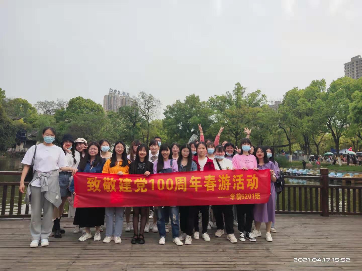 本网讯(通讯员 张雨晴)2021年是中国共产党成立一百周年,为庆祝建党一百周年,激发青年员工的爱国、爱党热情,引导青年员工深入地了解党的历史,领悟党的精神,切实增强青年员工的历史责任感和使命感。4月17日,学前5201班在中山公园开展“学习党史 凝聚信念”春游踏青活动。