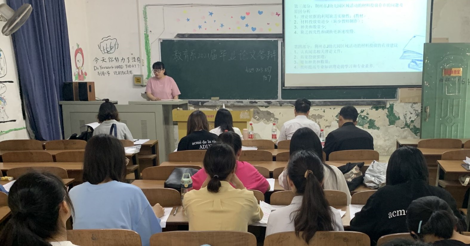 本网讯(通讯员 唐龙玮)5月29日上午,教育与心理系2021届毕业论文答辩在城中校区三教5个教室同步举行。参加答辩会的有系主任徐霄、副主任马君莉及教育与心理系各专业老师。