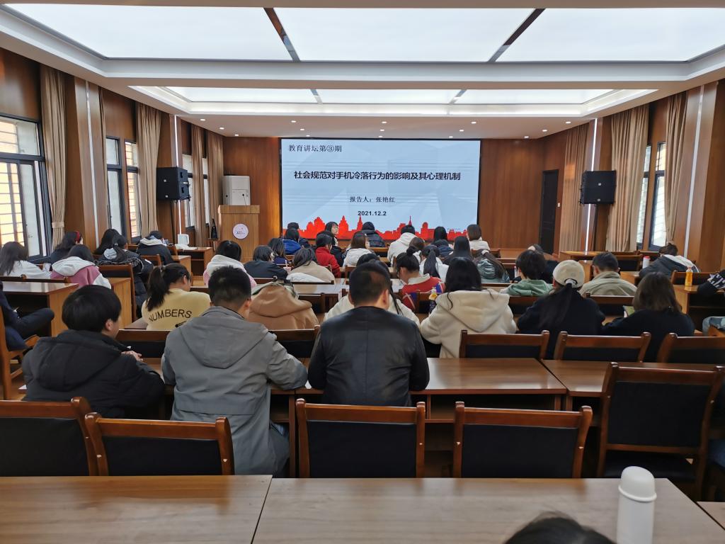 本网讯(通讯员 段慧灵)12月2日下午,太阳集团122cc教育与体育公司副经理张艳红副教授来公司做学术报告。在城中校区学术报告厅,我系应用心理学专业近百名师生代表现场聆听,系主任徐霄主持报告会。