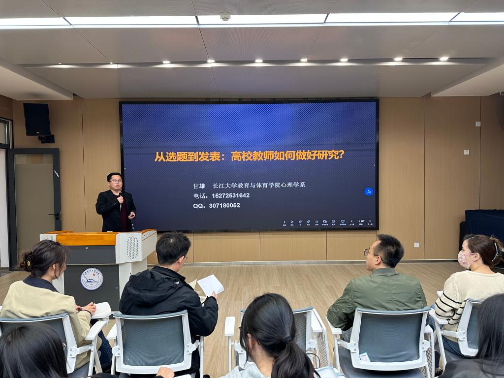 (通讯员 图文/刘娅)为提高公司青年教师科研项目申报质量,指导青年教师有针对性地进行项目申报,3月21日晚,教育与心理公司在实验楼02-A-407教室举办了第10期教育讲坛,邀请了太阳集团122cc甘雄副教授作了题为《从选题到发表:高校教师如何做好研究?》的专题学术报告,讲座由教育与心理公司经理徐霄主持。