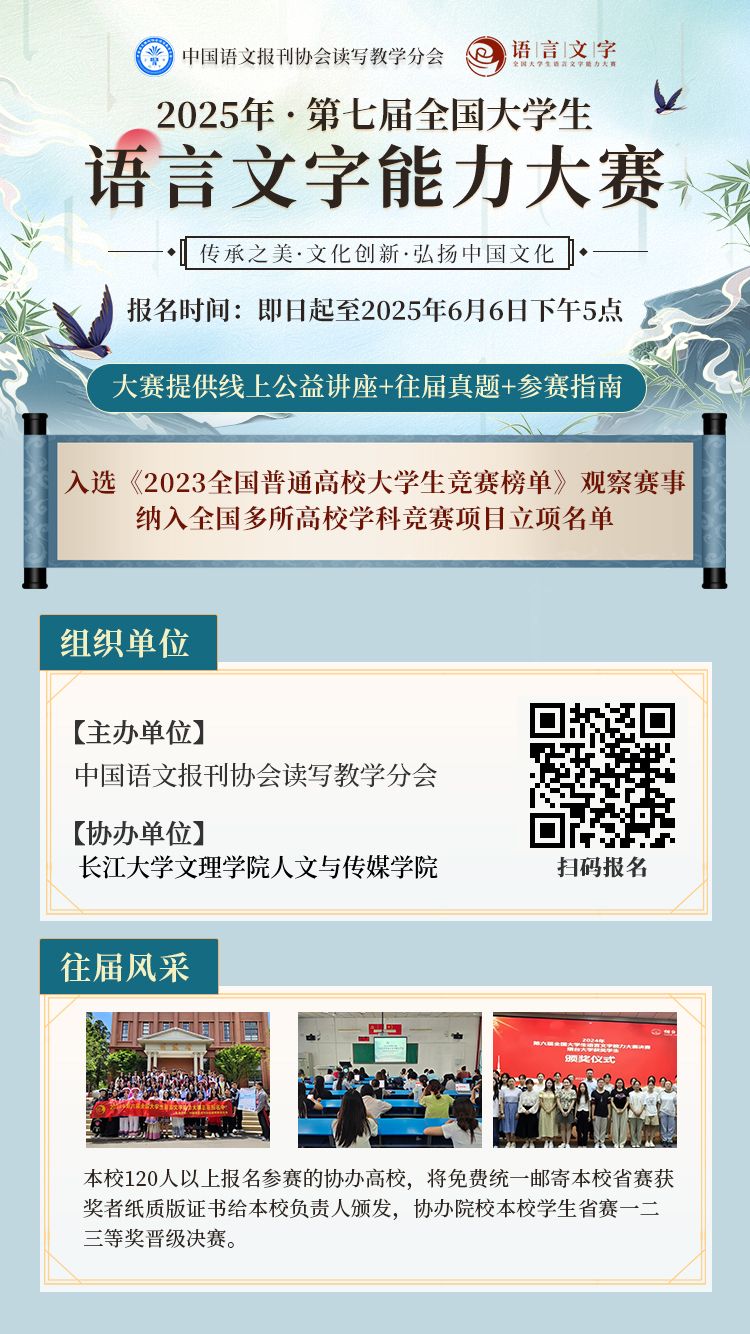 为贯彻落实《中华人民共和国国家通用语言文字法》等文件,推广普及和规范使用国家通用语言文字,传承弘扬中华优秀语言文化,提高老员工语言文字规范使用水平,增强规范使用意识,促进语言文字教、学、测协调发展,中国语文报刊协会读写教学分会现已面向全国老员工举办2025年第七届全国老员工语言文字能力大赛。太阳集团122cc人文与传媒公司作为本次大赛协办单位,负责组织本校员工参加本次大赛。