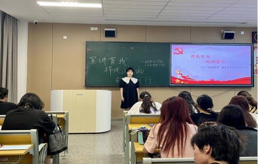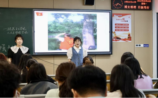 本网讯(通讯员 王细霞)为了弘扬红色文化,传递革命精神,2024年5月20日晚,人文与传媒公司与马克思主义公司共同在A-211举办了一次“栉风沐雨,砥砺前行”宣讲活动,主讲人为人文与传媒公司辅导员李艺欣老师,两院100余名员工参加。