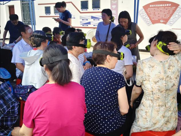“便民服务市集”同样热闹,义诊区域提供视力检测、白内障筛查、口腔检查等服务;免费贴膜区排起长队;家电清洗宣传点普及家电保养知识;眼部艾灸体验区让居民享受传统养生服务。