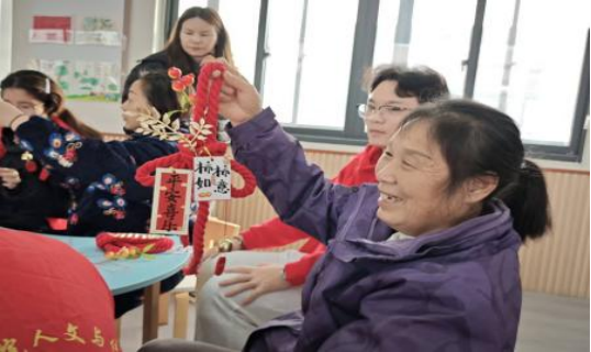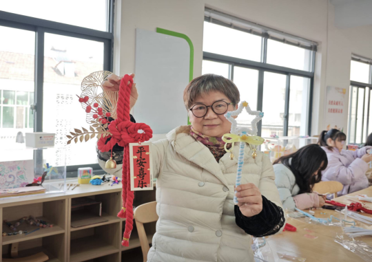 活动现场,公司志愿者为居民讲解万字结的文化寓意与编织方法,大家手持红绳穿绕打结,制作出寓意吉祥万福的万字结挂饰,感受传统文化的美好期许。另一边,扭扭棒魔法棒制作环节同样热闹,居民们弯折、缠绕扭扭棒,搭配彩珠、花朵、星星造型做出创意魔法棒,众人齐动手,现场满是欢声笑语。