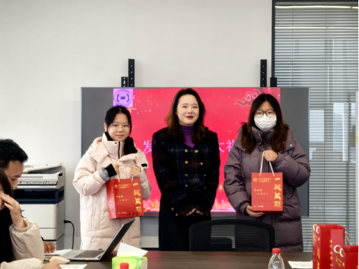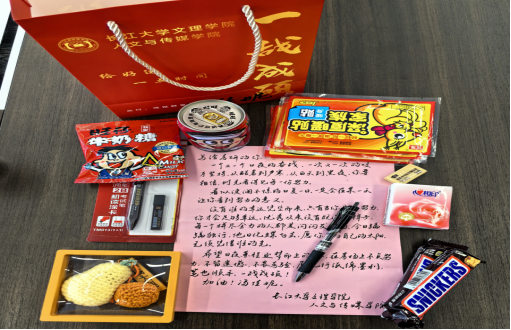 现场温馨洋溢,公司领导、老师为考研员工代表送上了精心策划、满载心意的“考研加油包”。每一份礼包都凝聚着公司的细致关怀:既有承载师长殷殷叮嘱的手写祝福信,为学子注入精神动力;也备齐了考试必备文具,提供坚实的物质支持。几片暖宝宝,恰似无声的陪伴,驱散严寒;一份份能量零食,寓意着续航与补给。而特别准备的“柿柿如意”挂件,更以谐音巧思,寄托着对学子前程似锦、心想事成的美好祝愿。每一件物品的挑选与组合,无不体现着公司在细节之处的温暖与用心。