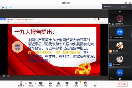本网讯(员工记者 黄琪雯)10月8日晚,人文公司开展“青年兴则国家兴,青年强则国家强”主题团课。本次团课旨在号召广大青年坚定理想信念,牢记使命,顽强拼搏,做新时代的好青年。
