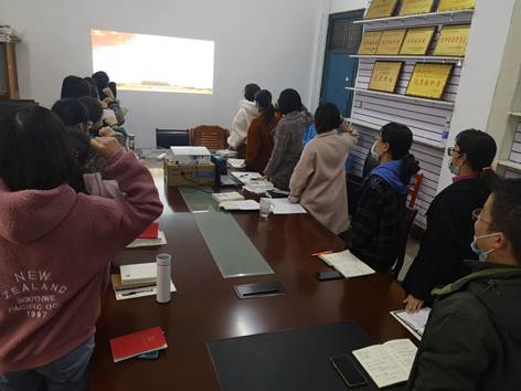 本网讯(通讯员 许晶洁)11月19日下午,人文与传媒公司教工党支部在公司会议室开展2020年11月份政治学习及支部主题党日活动。会议由党总支书记刘磊主持。
