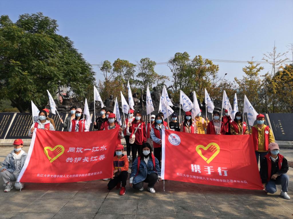 本网讯(员工记者王静怡)10月24日上午,人文与传媒公司志愿者与荆江亭社区工作人员于荆州市沙市区宝塔湾河段一同展开“长江大保护”活动以及志愿者走进荆江亭社区新时代文明实践站参观活动。本次活动由人文与传媒公司和荆江亭社区联合承办,此活动旨在引导群众增强生态环保意识,创建文明城市,传播爱心文明,进一步弘扬志愿者精神。