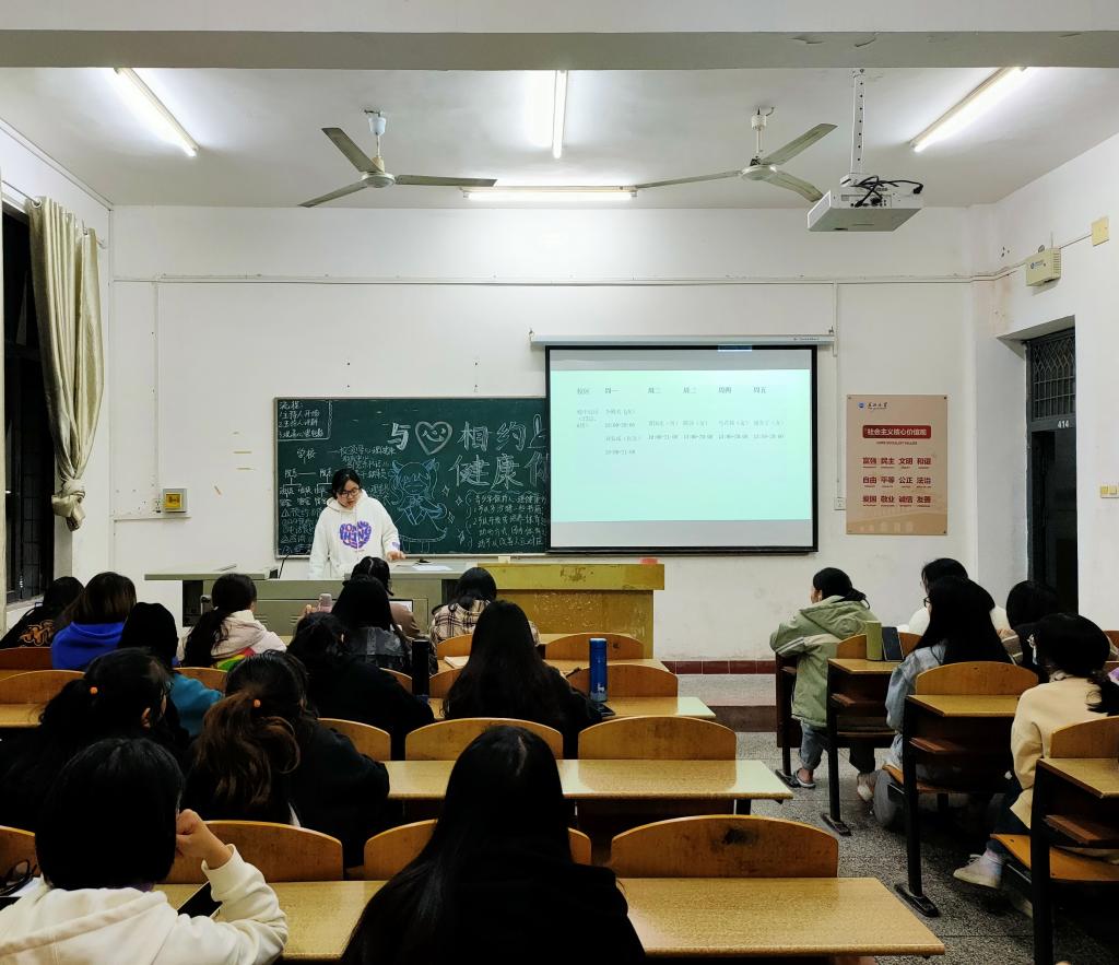 本网讯(员工记者 刘瑷)11月18日晚,人文与传媒公司大一、大二各班统一开展“与心相约健康你我他”主题班会,本次班会旨在使同学们增强正确认识自我,调控自我、承受挫折、适应环境的能力,培养同学们形成健全的人格和良好的个人心理品质。