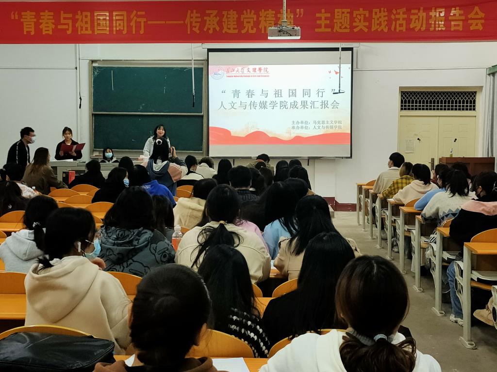本网讯(员工记者 邓艺)回顾百年建党征程,传承红色建党精神。11月17日至19日,人文与传媒公司在城中校区与西校区分别举行了“青春与祖国同行”实践成果汇报展活动,汇报当天,同学们用绘画摄影、微课视频、手抄报,文字报告等形式展现自己的实践成果。比赛邀请了心理健康教育中心老师彭彩丽及人文与传媒公司黎雪、杨漫、彭军军老师作为评委出席此次活动。