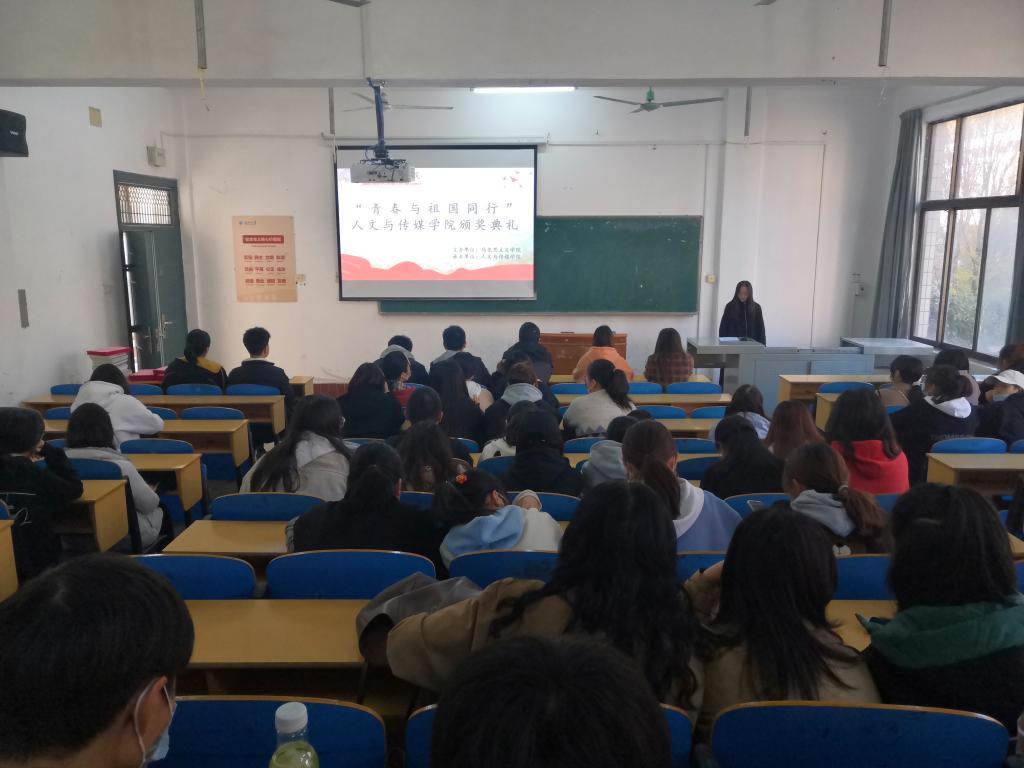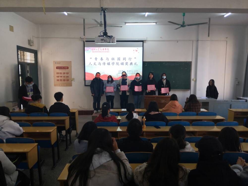 本网讯(员工记者丁燕)历经近一月的“青春与祖国同行”初赛于近日落下帷幕。11月25日,人文与传媒公司于城中校区一教214举行“青春与祖国同行”初赛颁奖仪式。人文与传媒公司党总支书记刘磊,团总支副书记黄柳,主席方倩倩及副主席余昊泽、李文杰出席此次活动。活动由员工会学习部部长刘昌莎主持。