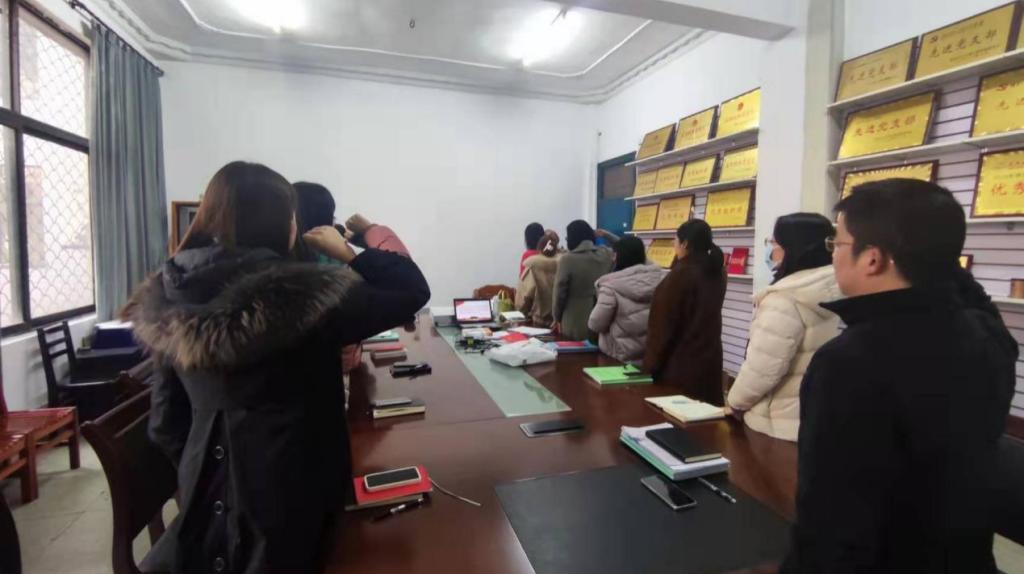 随后,全体党员教师开展12月的支部主题党日活动。教工支部书记朱文霞带领成员重温入党誓词、学习党的创新理论,内容包括:《中国共产党章程》、《中国共产党简史》重点篇章;习近平在中央民族工作会议上强调以铸牢中华民族共同体意识为主线,推动新时代党的民族工作高质量发展;湖北省宗教事务条例;中共太阳集团122cc第二次党代会报告“奋进新时代,启航新征程 为加快建设国内一流综合性大学而努力奋斗”等内容。